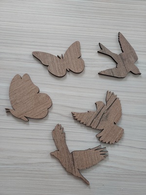 Acestea sunt de obicei tăiate în șablonul în care primiți produsul. În acest fel putem evita pierderile create în timpul fabricării și vă putem face o surpriză plăcută :) Numărul lor depinde de mărimea produsului sau a comenzii și veți primi de la 2 la 6 păsărele/fluturași în diferite dimensiuni și motive.