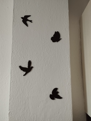 Naprostă paradă, un accesoriu grozav pentru ceasurile cumpărate. Nu știu dacă a fost o întâmplare sau a fost un cadou specific pentru produsele noastre, dar a ieșit bine. Ne-am cumpărat un ceas de perete mare și ne-au fost oferiți 4 (de forme diferite) păsări negre pentru perete. Totul arată foarte bine și dacă ar fi fost doar ceasurile, probabil că am fi fost stânjeniți și ar fi trebuit să căutăm ceva complicat pe undeva.