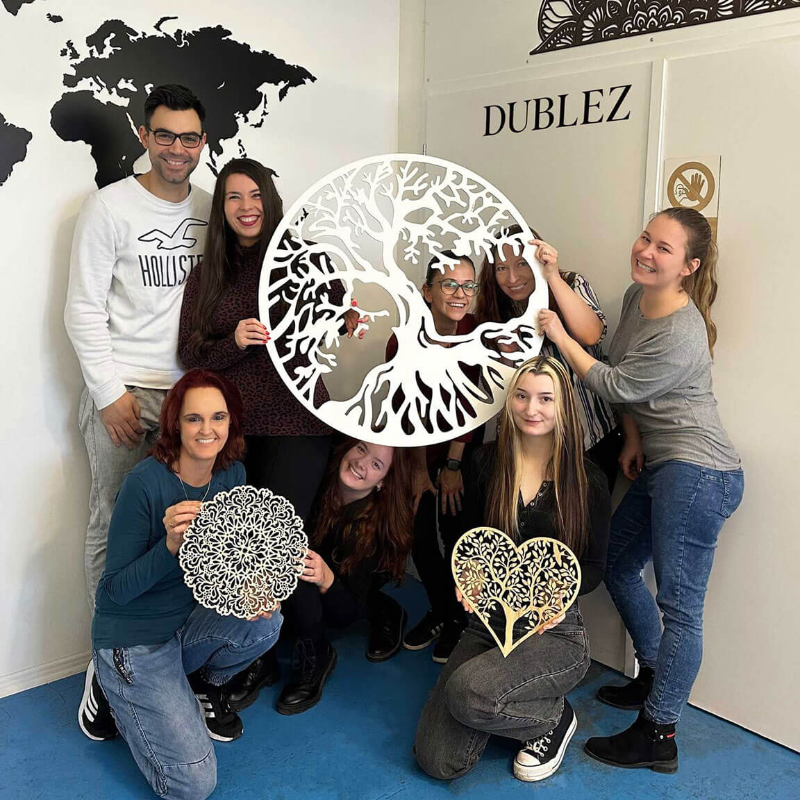 În spatele brandului DUBLEZ stă o echipă tânără de oameni care iubesc designul și materialele naturale încă din 2018. Producem accesorii din lemn pentru casă, decorațiuni de nuntă, decorațiuni pentru tort și articole de cadouri. Încercăm să aducem frumusețe în casele oamenilor, plăcere și simbolism ascuns cu povestea.