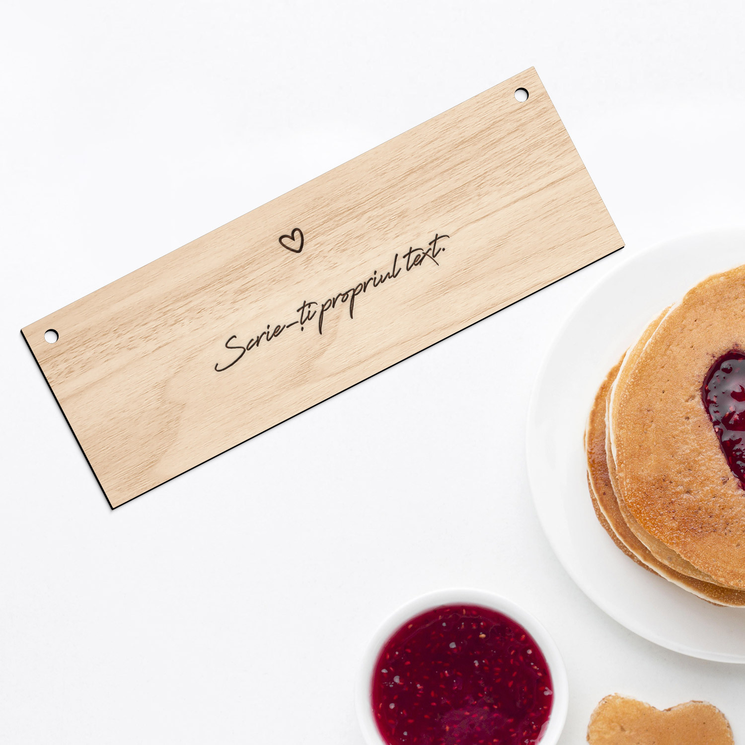 Pe plăcuța din lemn, vă putem grava orice text personalizat de care aveți nevoie. Inima este gravată automat pe plăcuță.