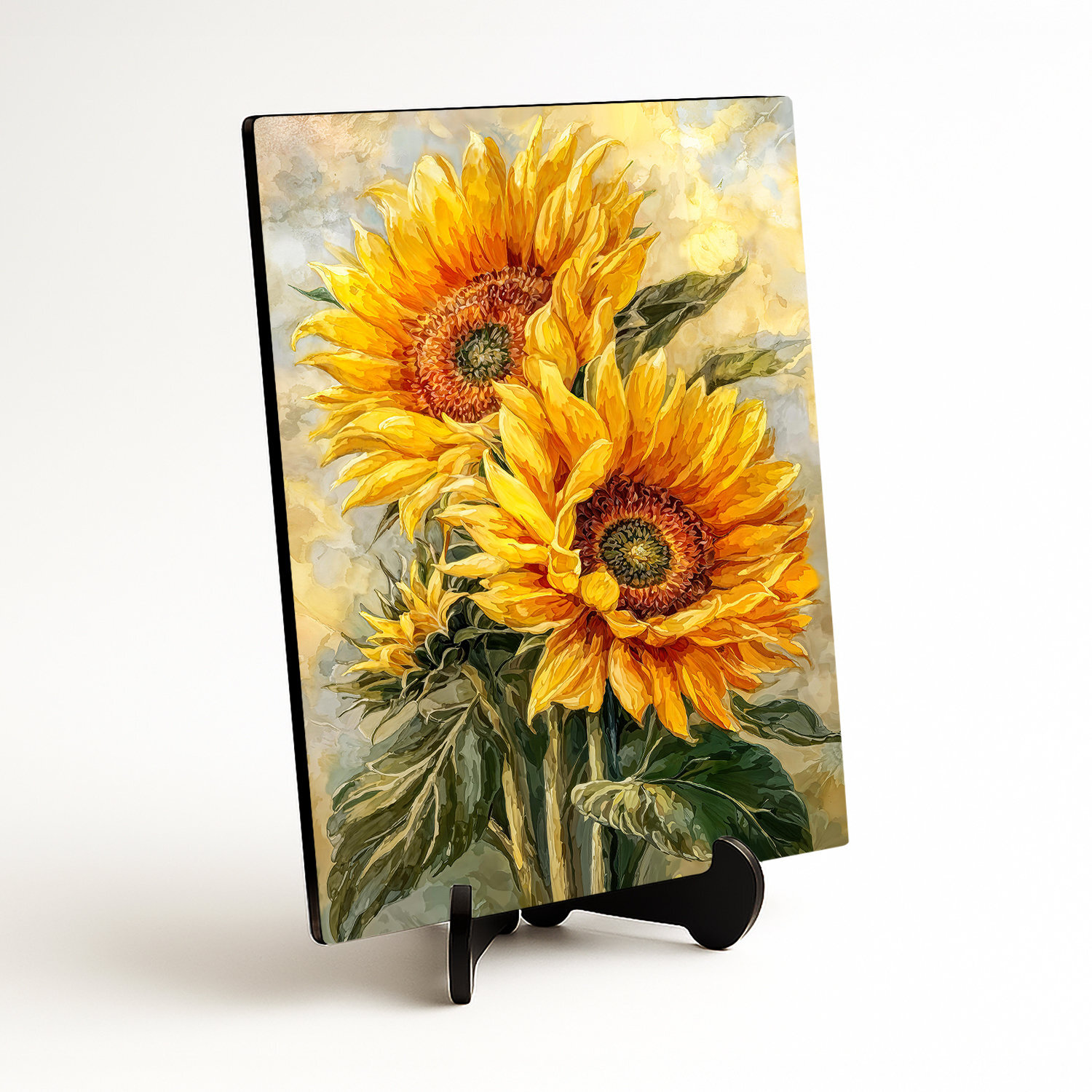 Tabloul colorat redă frumusețea florilor de floarea-soarelui în plină înflorire, cu petale intens galbene. Tonurile calde aduc în încăpere mai multă lumină și o energie plăcută. Tabloul din lemn cu floarea-soarelui se potrivește natural mobilierului în nuanțe neutre și devine un punct central atemporal al livingului, sufrageriei sau bucătăriei. Se integrează armonios în interioare de inspirație rustică, provensală, boho sau modernă. Este un cadou minunat pentru mamă, bunică, soacră sau o prietenă care iubește florile, natura și atmosfera primitoare a unui cămin cald.