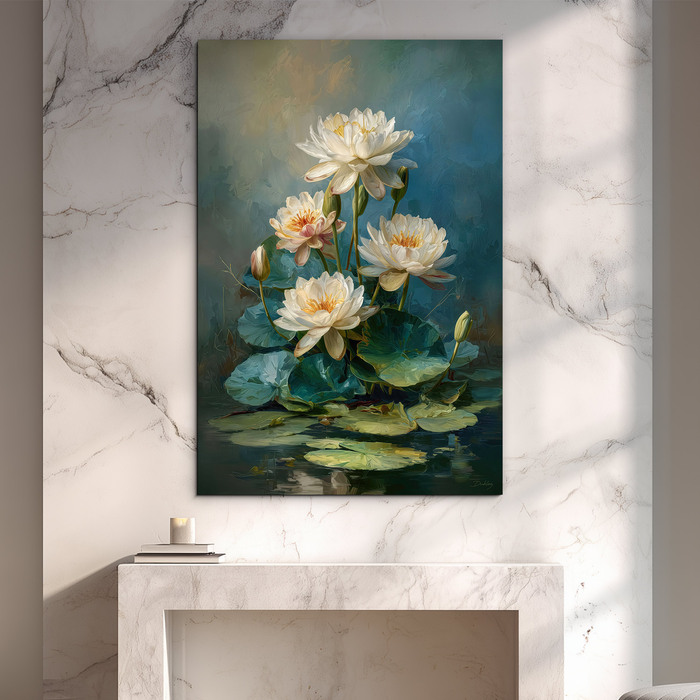 Semnificația tabloului: Nufărul simbolizează puterea de a depăși vremuri dificile și de a înflori în puritate. Elementul acvatic din tablou calmează natural emoțiile și induce o relaxare profundă în cameră.