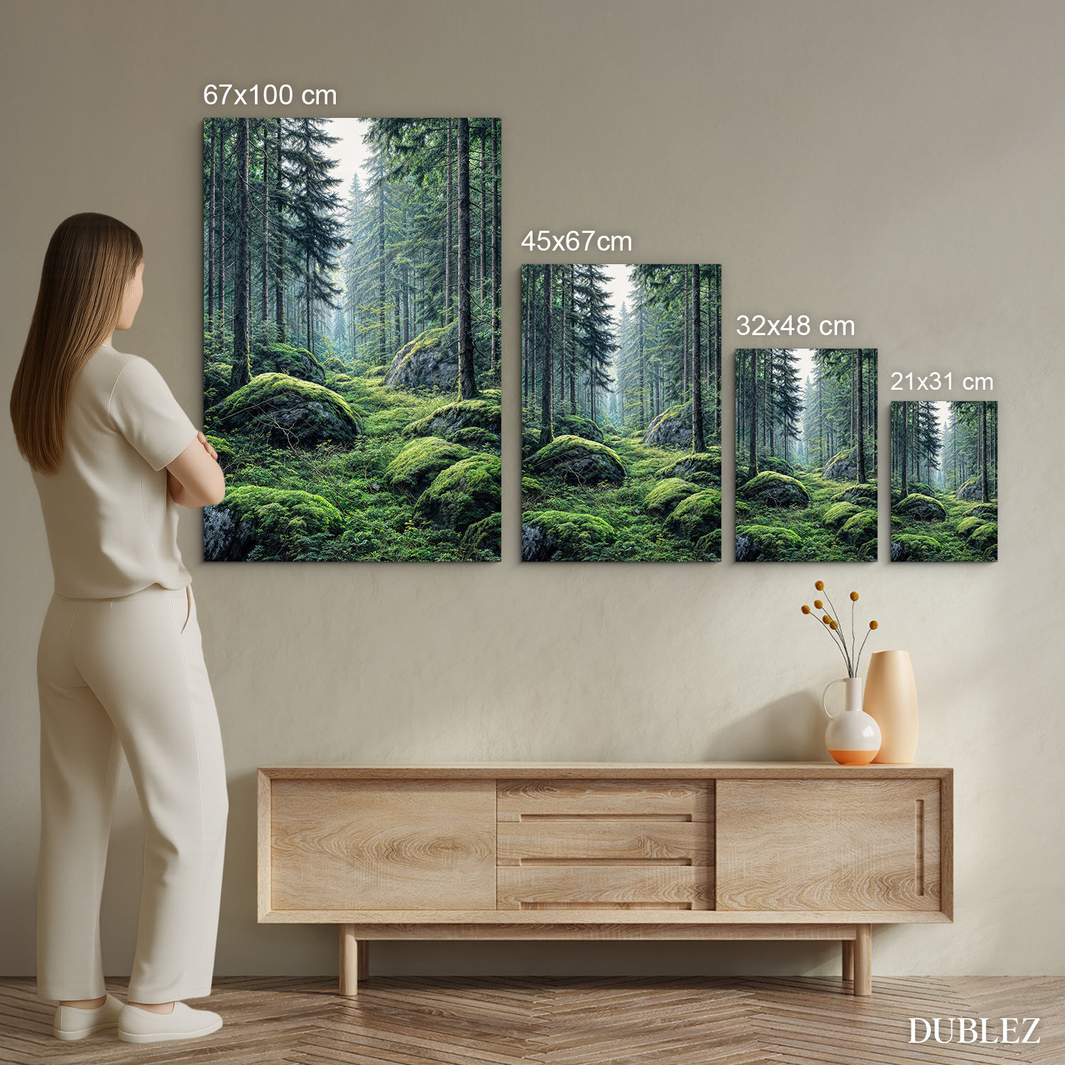 Tabloul din lemn – Pădurea adâncă aduce interiorul direct în inima naturii. Detaliile elaborate ale pădurii de brad cu mușchi și stânci par autentice și oferă spațiului o notă unică de natură. Execuția de calitate a lemnului face din tablou un accesoriu versatil pentru living, dormitor sau birou. Este o decorațiune care atrage atenția din prima clipă și aduce în casă un sentiment de liniște, echilibru și armonie.